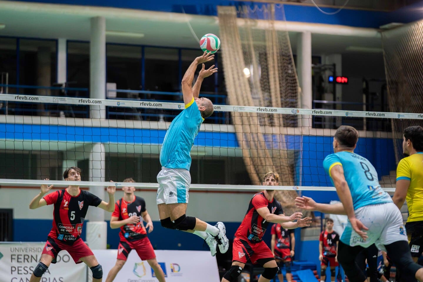 El encuentro comenzó con un primer set muy disputado en el que el CV Vigo tomó ventaja inicial (4-10). El equipo local reaccionó y llegó a situarse 11-15 a mitad del set. Tras un tiempo muerto solicitado por el conjunto visitante (16-19), el tramo final mantuvo la igualdad, pero el CV Vigo cerró la manga por 22-25.